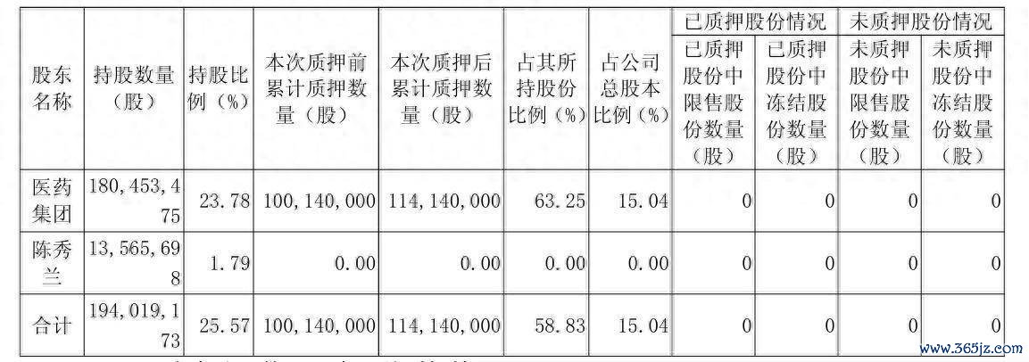 现在,医药集团累计质押老庶民1.14亿股,占其所握股份比例为63.25%,占公司总股本比例为15.04%。